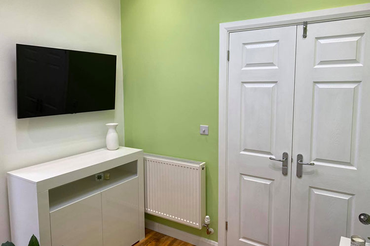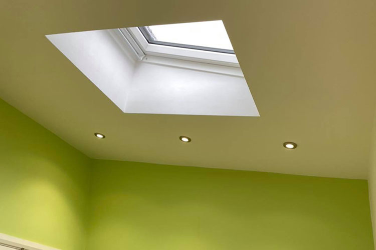 A rear extension completed by us from the ground up. We added a downstairs toilet and shower and a small living room with a skylight window.