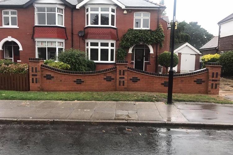 A Garden wall built this week in Bessacarr. Built-in a Victoria Red brick with blue features built to customer requirements.