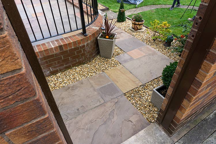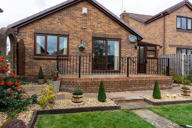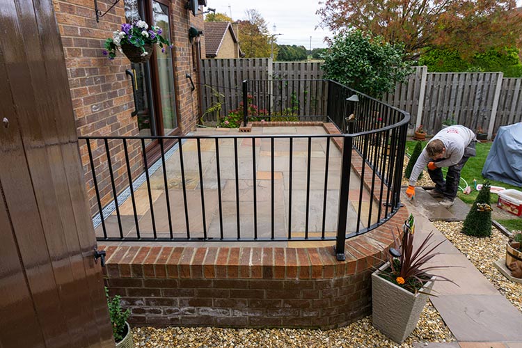 We installed a raised patio with brickwork and railings to finish. We finished the project off by adding steps to the patio and a garden path leading to the back gate. The empty space was filled using an aggregate.