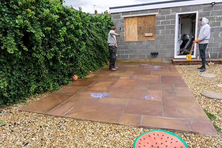 A new patio attached to the garage in the back garden for a local client in Kirk Sandall, Doncaster.